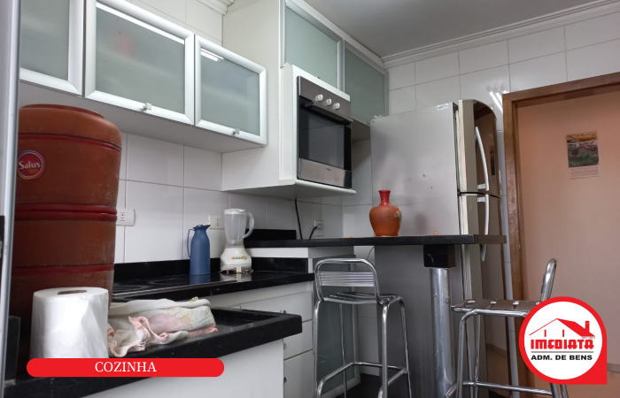 - Cozinha equipada com gabinete, armários planejados, micro-ondas, geladeira;