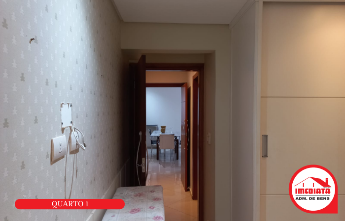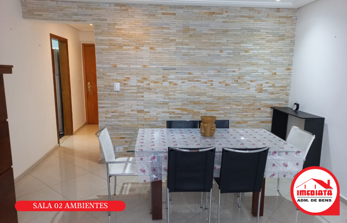 - Sala 02 ambientes (estar e jantar) com mesa de jantar e painel com TV;