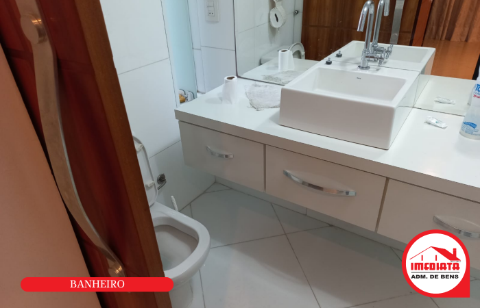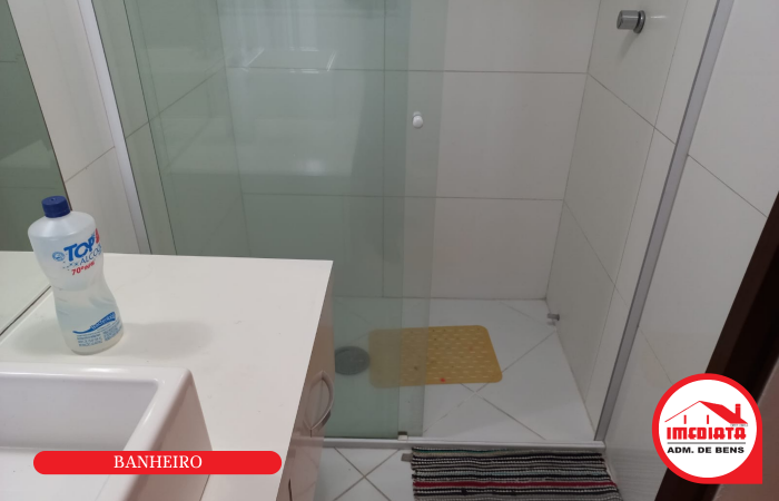 - 1 banheiro com gabinete, box e espelho;